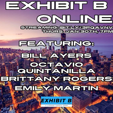 Founded by School of the Art Institute of Chicago alums J. Howard Rosier, Alex Wells Shapiro, James Stewart III, and Ian Wojcikiewicz, Exhibit B—a performance series sponsored by the Guild Literary Complex—pushes artists to think beyond the typical limitations of a reading and develop new ways to bring their work into the world. “We don’t want to tell people what to do, we just want to create a space for people to express themselves,” shared Rosier.